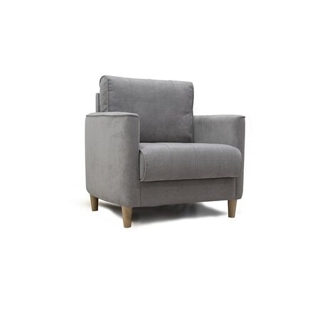 - Практичная обивка — велюр из 100% полиэстера почти не оставляет следов от прикосновений - Скругленные формы — идеально подходят для современных интерьеров без острых углов - Компактные размеры — поместится даже в небольшой комнате от 9 м² Кресло прекрасно подойдет для малогабаритных квартир и студий. Его минималистичная форма и нейтральный серый цвет легко вписываются как в гостиную, так и в спальню или рабочий кабинет. Деревянные ножки приподнимают кресло над полом, создавая ощущение легкости и визуально экономя пространство.Технические детали: