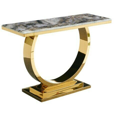 Стол-консоль Лира. Столешница: микрокристаллический камень, цвет темно-серый. Основание: нержавеющая сталь, золото 120х40х76 см.