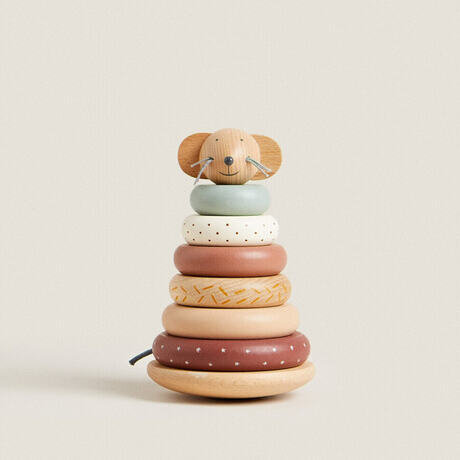 Деревянная игрушка с головой в виде мыши с усами для складывания деталей и создания разнообразных узоров. Стимулирует развитие чувств и моторики детей.