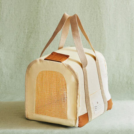 Переноска для перевозки игрушечного питомца с сетчатой панелью спереди.