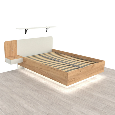 Кровать со светодиодной подсветкой нейтрального белого цвета. Выведен сенсорный выключатель подсветки в спинку изголовья справа. Трансформатор и вилка идут в комплекте. Остается только включить в розетку. Освещение может служить ночником. Создает эффект парения. У изголовья ящик с доводчиками, открытие от нажатия. Выше – полка на итальянских держателях, на которую можно расставить декор. Матовые поверхности приятны на ощупь и просты в уходе. Изделия из мебельной плиты не вызывают желание у пушистых любимцев поточить когти. Их проще убирать от пыли. Для очистки достаточно влажной тряпки. Это особенно подойдет аллергикам. Кровать в минималистичном современном стиле. Легко вписывается в любой интерьер.