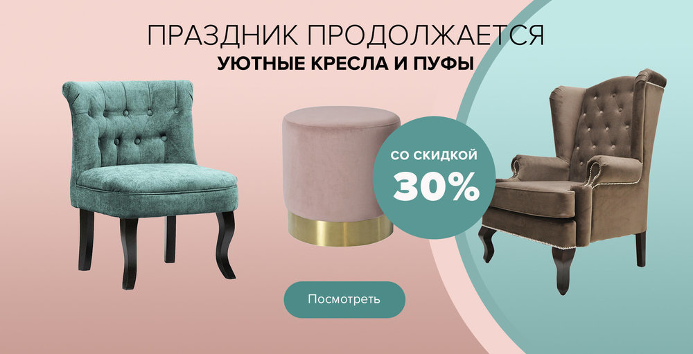 Одно маленькое кресло может сделать интерьер уютнее. В нашей подборке как раз много интересных вариантов всех цветов и размеров. Например, небольшие кресла из велюра с каретной стяжкой не только уютные, но и удобные, несмотря на то, что их ширина всего 50 см. И не откладывайте покупку на потом: скидки на кресла в этой подборке будут действовать до 31 января.
